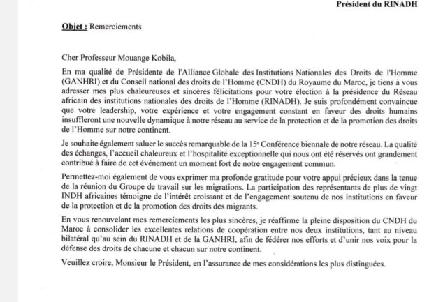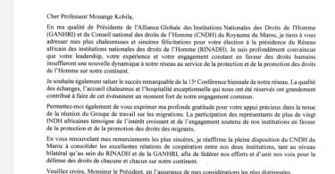 Remerciements et félicitations de la présidente de GANHRI au...