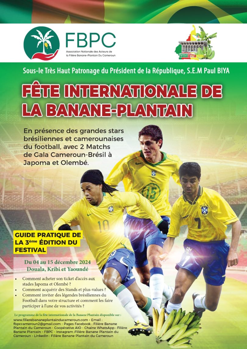 En présence des grandes stars brésiliennes et camerounaises du football, avec 2 Matchs de Gala Cameroun-Brésil à Japoma et Olembé.