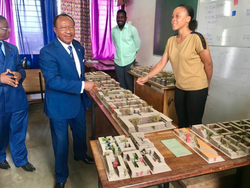 Accompagnés de Monsieur le Directeur de l’ENSTP Pr NKENG George ELAMBO et du Directeur Adjoint de l’ENSTP Dr BWEMBA Charles, le Ministre et le Secrétaire d’Etat auprès du Ministre des Travaux Publics chargé des Routes, ont apprécié les dessins et maquettes réalisés par les étudiants, au cours d’une visite guidée effectuée par le Chef du Département Architecture et Urbanisme Dr ABA NKASSE Alain et deux enseignants de l’Université de Padoue ( Italie) Pr. Dunia MITTNER et Pr. Sebastiano ROVERONI.