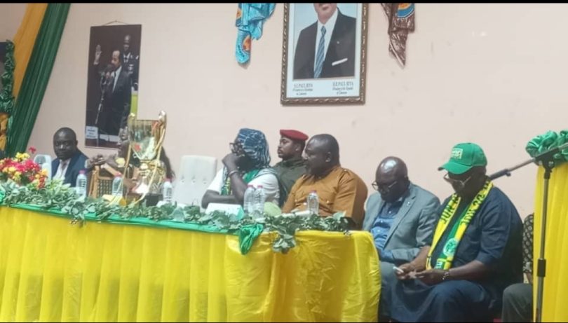 Venu de Kribi pour honorer ce rendez-vous de l’Équipe Vainqueur de la Coupe du Cameroun, le PDG Ndja’a Mbeuh Jean Célestin WATAT Représentant du Roi dans l’Océan, a été élevé par la Présidente d’Honneur le Ministre Célestine KÉTCHA COURTÈS, pour être au présidium du Congrès de la Panthère Sportive du Ndé.