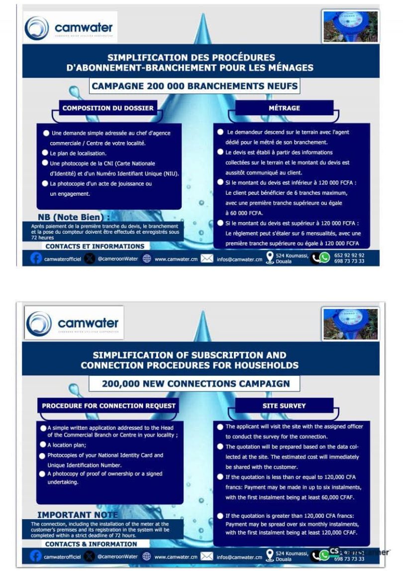 Camwater/Campagne « 200 000 branchements neufs: Tout savoir sur les procédures d’abonnement-branchement pour les ménages