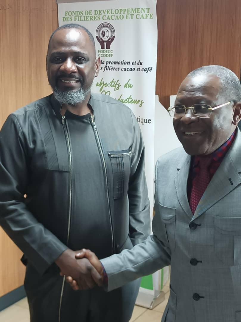 Tony OBAM le Président National de la Filière Banane-Plantain du Cameroun, et Samuel Donatien NENGUÉ l’Administrateur du FODECC, font alliance pour que les produits phares de la SND30 et de la Politique d’Import-Substitution du Président Paul BIYA que sont la Banane-Plantain, le Cacao et le Café, soient les grandes vedettes de la Fête Internationale de la Banane-Plantain, au même titre que les Stars Brésiliennes du Football conduites par RONALDINHO au Cameroun du 5 au 15 décembre 2024.