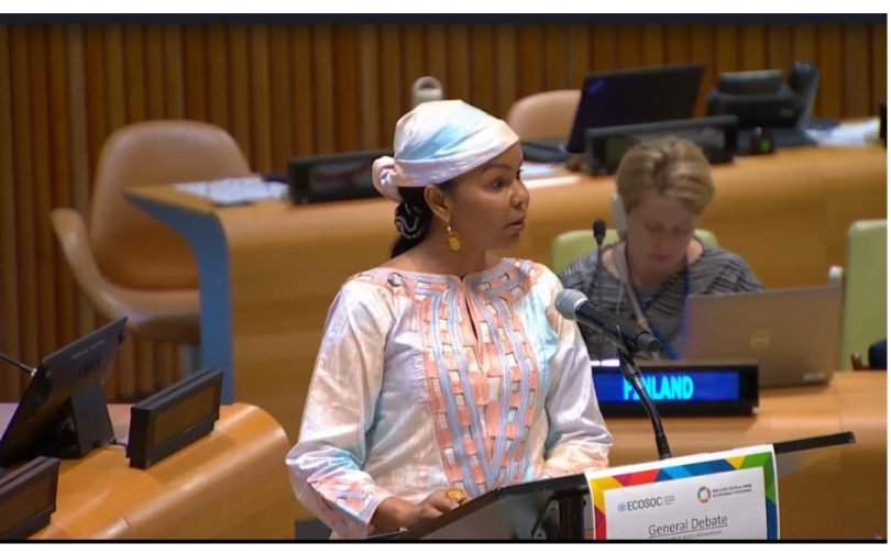 A l’occasion du Forum politique de haut niveau sur le développement durable, un segment ministériel de trois jours, organisé conjointement avec le segment de haut niveau de l’ECOSOC, a eu lieu du 15 au 17 juillet 2024 au siège de l’ONU a new York. Le débat général avait pour thème “Du sommet des ODD au sommet de l’avenir (22-23 septembre 2024)». La rencontre du mardi 16 juillet avait porté essentiellement sur les déclarations faites par les États membres, dans un minutage bien défini par le président de séance. C’est ainsi que celle du Tchad a été délivrée, par Mme Fatima Haram Acyl, ministre déléguée auprès du ministre des Finances et du Budget, chargée de l’Économie et du Plan en présence des autres membres de la délégation tchadienne.