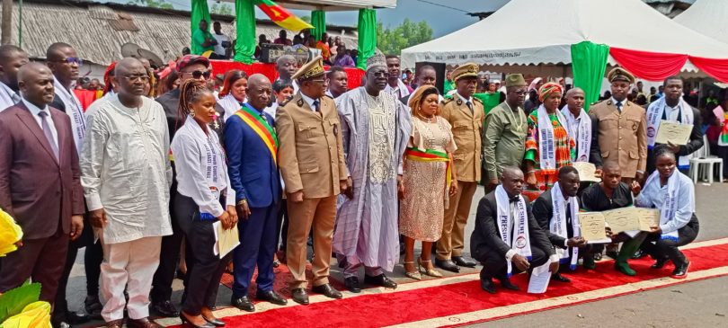 La cérémonie s’est achevée par des moments forts, notamment la remise du drapeau camerounais aux chefs traditionnels et aux autorités administratives, ainsi que la prestation de serment des bénéficiaires des dispositifs d’appui du gouvernement. Le ministre de la jeunesse habillé en tenue traditionnelle du Sud-Ouest par les chefs d’Idenau, a également annoncé la tenue d’une cérémonie de clôture à l’Université Catholique de Buea, où des prix seront remis aux étudiants méritants.