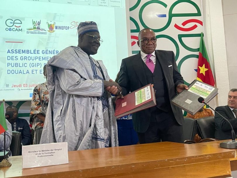Le Ministre par intérim de l’Emploi et de la Formation professionnelle (MINEFOP), MOUNOUNA FOUTSOU, a présidé l’Assemblée générale élective du Groupement d’Intérêt Public (GIP) pour les projets des Centres de Formation Professionnelle Sectoriels (CFPS) de Douala et Edéa. La rencontre s’est tenue au siège du Groupement des Entreprises du Cameroun (GECAM), soulignant la forte implication du secteur privé dans cette initiative majeure.