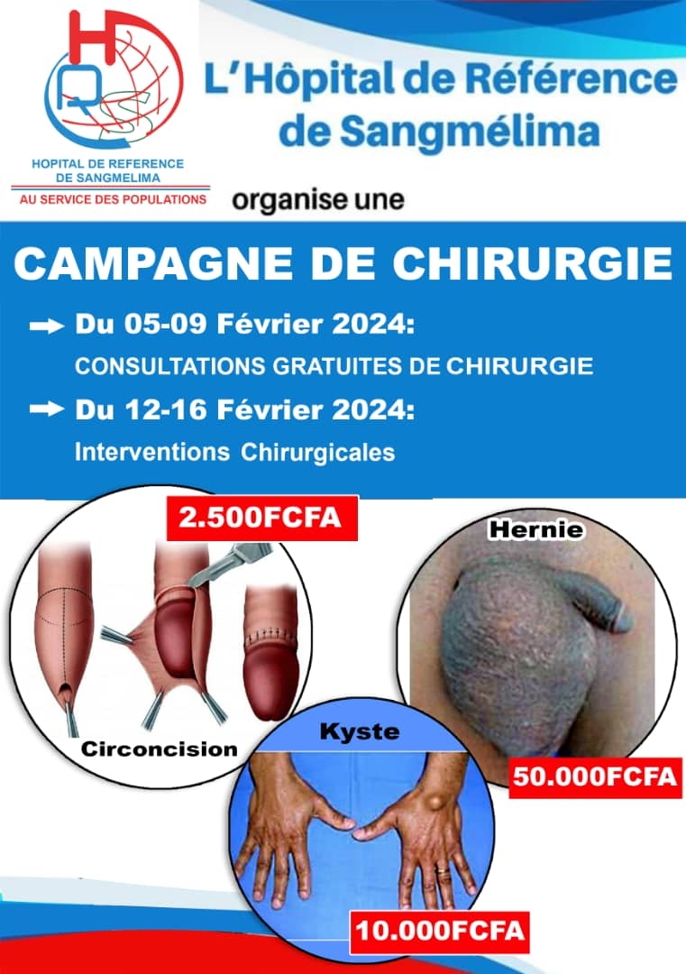 SANTE L’hôpital de Référence de Sangmelima organise une campagne de chirurgie 17 janvier 2024Add Commentby Annette Olinga Written by Annette Olinga FacebookXWhatsApp