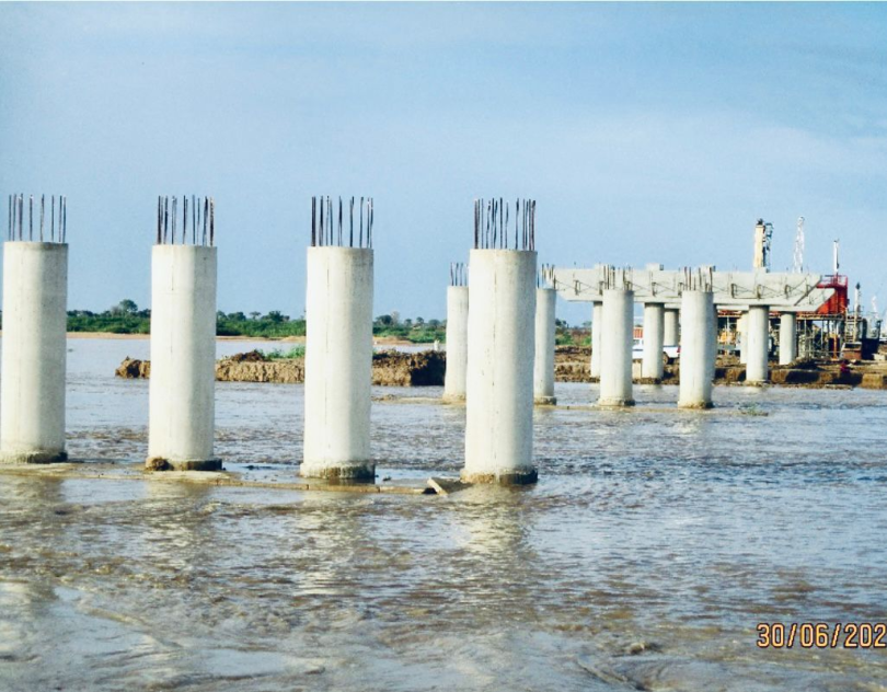 Pont sur le fleuve Logone à Bongor : la construction des pieux est achevée