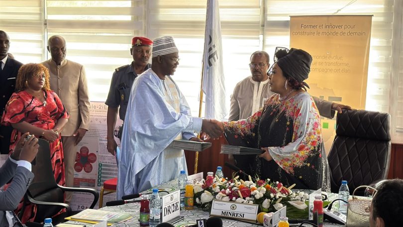 Le Ministère de la Recherche Scientifique et de l’Innovation (MINRESI) et l’Institut International d’Ingénierie de l’Eau et de l’Environnement (2iE) ont officiellement signé un Accord-Cadre de Coopération ce 21 Avril 2026. La cérémonie, présidée par la Ministre Dr Madeleine TCHUINTE, s’est déroulée dans la salle de réunion de son cabinet à Yaoundé, en présence des responsables centraux et des organismes sous tutelle du MINRESI, ainsi que d’une délégation de l’Institut 2iE conduite par son Directeur Général, le Professeur El Hadji Bamba DIAW.