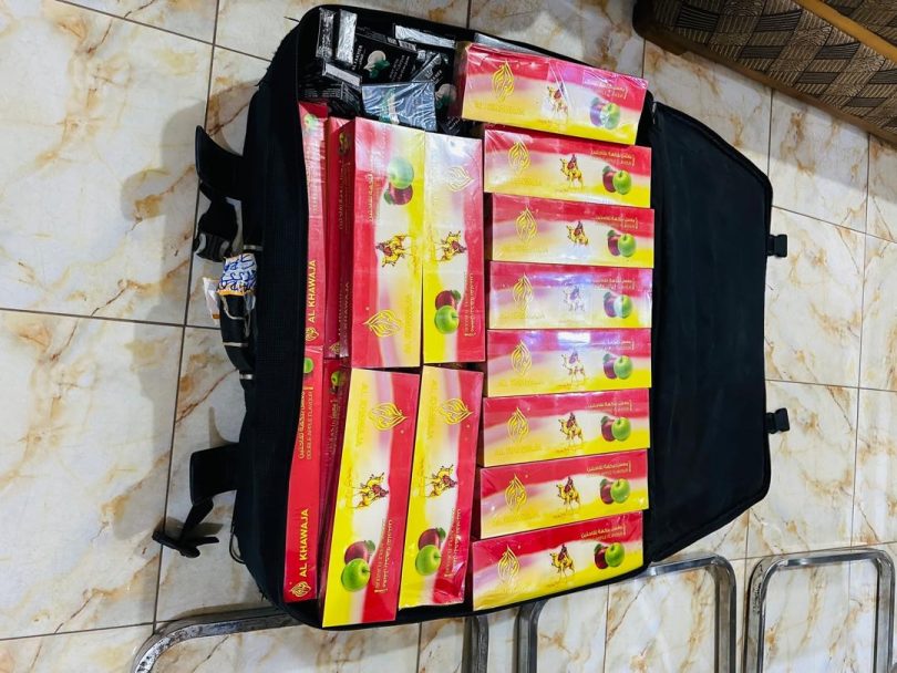 Ce 20 avril 2026, les douaniers du Poste de PITOA ont intercepté une importante cargaison de produits « TABAMEL chichia » au lieu-dit Bagongo, à l’entrée de Garoua. La marchandise, composée de 88 cartouches de 10 paquets chacune, était dissimulée dans une valise à bord d’un bus en provenance de Yagoua (Extrême-Nord). Rappelons que la commercialisation et la consommation de chicha dans les lieux publics sont interdites au Cameroun depuis mars 2022, en raison des risques sanitaires majeurs.