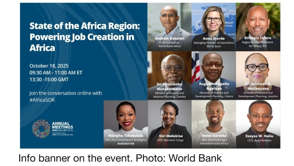 The urgent need to connect Africa’s vast job creation potential with sustainable energy solutions and supportive policy frameworks dominated discussions at the “State of the Africa Region” event during the recent 2025 IMF-World Bank Group Annual Meetings.