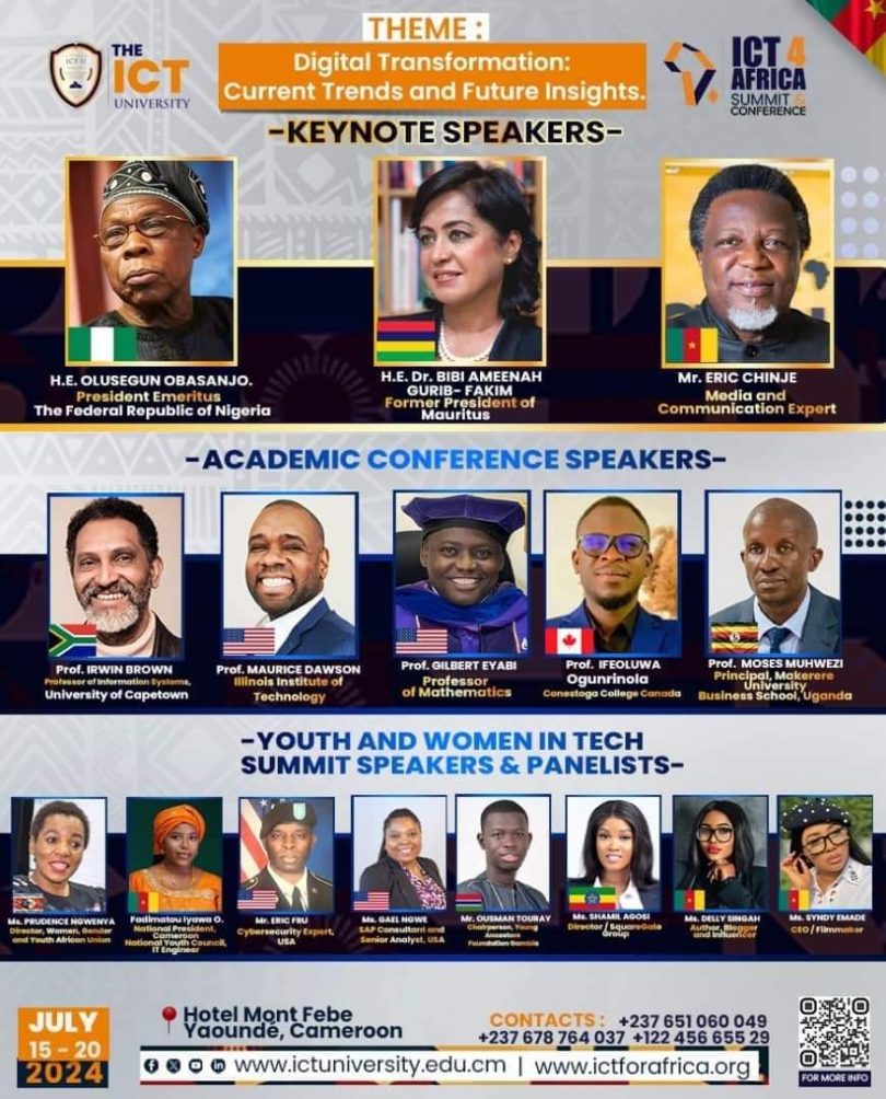 Une conférence internationale historique sur les technologies de l’information et de la communication, ( Tic) organisée par l’Université des TIC baptisée : « ICT Africa Summit » doit s’ouvrir à Yaoundé le lundi 15 juillet. La conférence se terminera le 20 juillet à l’hôtel Mont Fébé à Yaoundé. Le thème de la conférence inédite est : « Transformation numérique : tendances actuelles, perspectives futures ».